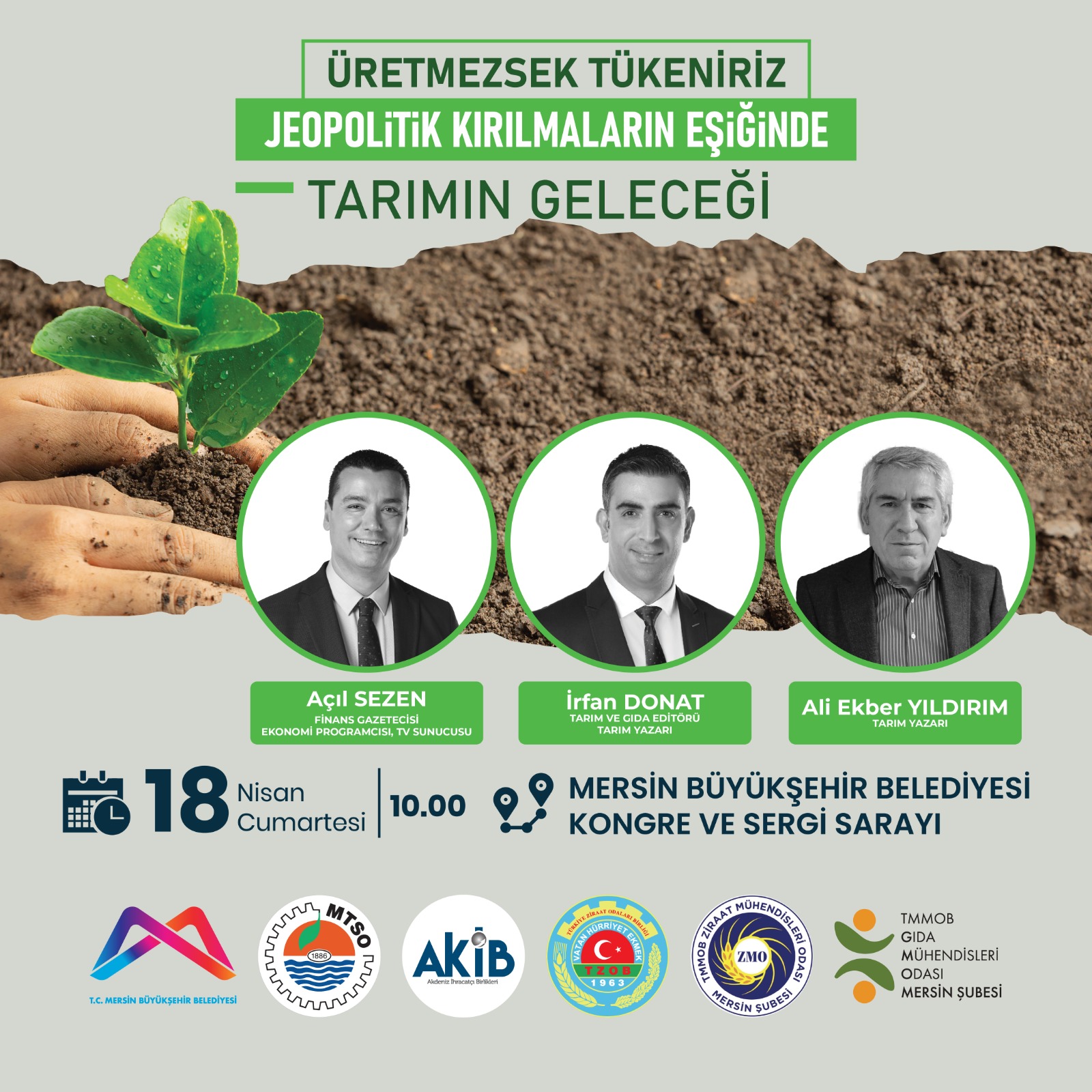 Mersin Büyükşehir Belediyesi, Mersin Ticaret ve Sanayi Odası, Akdeniz İhracatçı Birlikleri, Akdeniz Ziraat Odası, TMMOB Ziraat Mühendisleri Odası Mersin Şubesi ve TMMOB Gıda Mühendisleri Odası Mersin Şubesi işbirliğinde "Jeopolitik Kırılmaların Eşiğinde Tarımın Geleceği Konferansı"