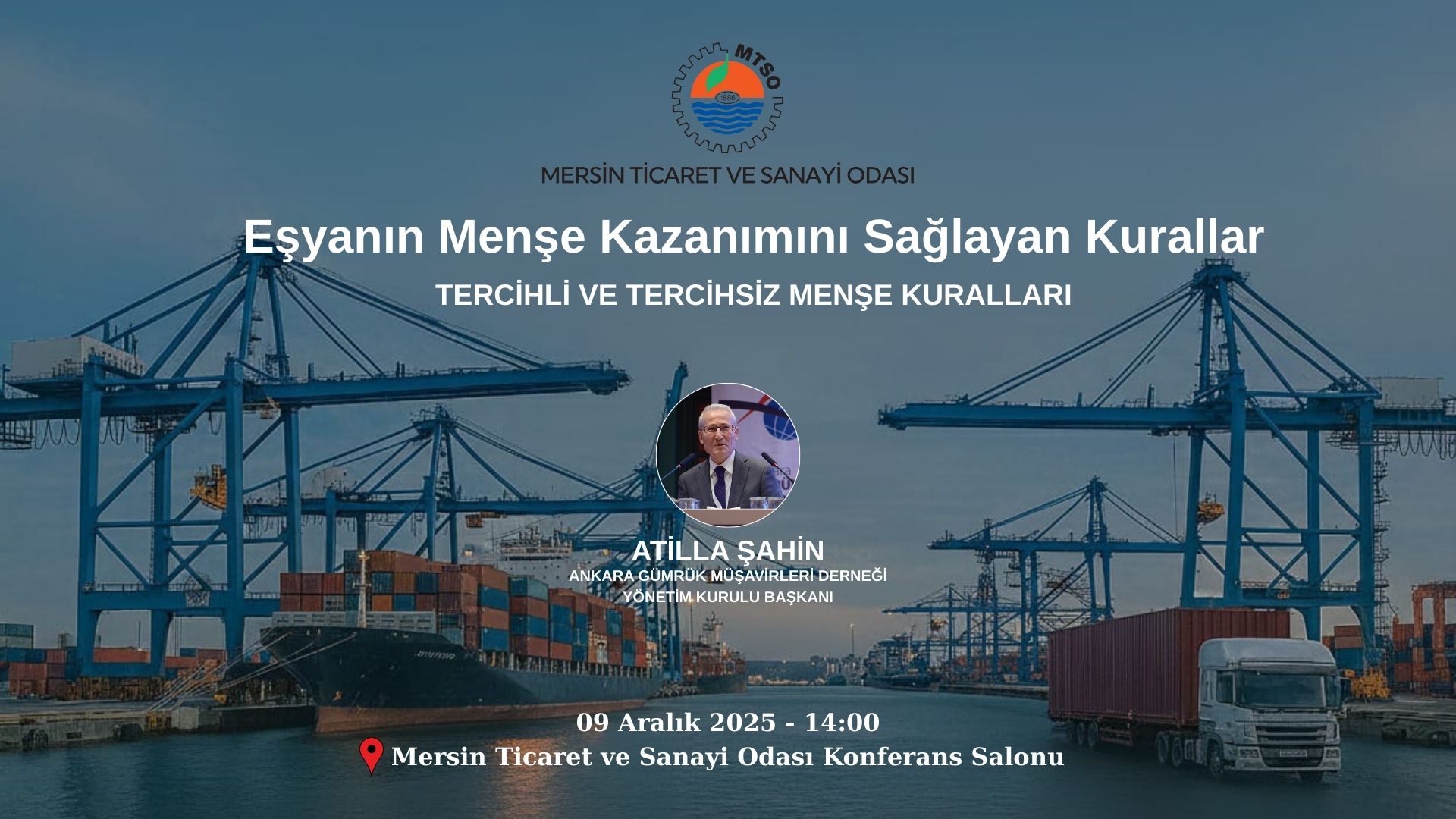 31 Ekim - 01 Kasım 2025 tarihleri arasında Mersin Ticaret ve Sanayi Odası Atölye1886 Eğitim Salonu "Dış Ticaret Hedef Pazar Araştırması ve Hedef Müşteri İstihbaratı Eğitimi" düzenlenecektir.